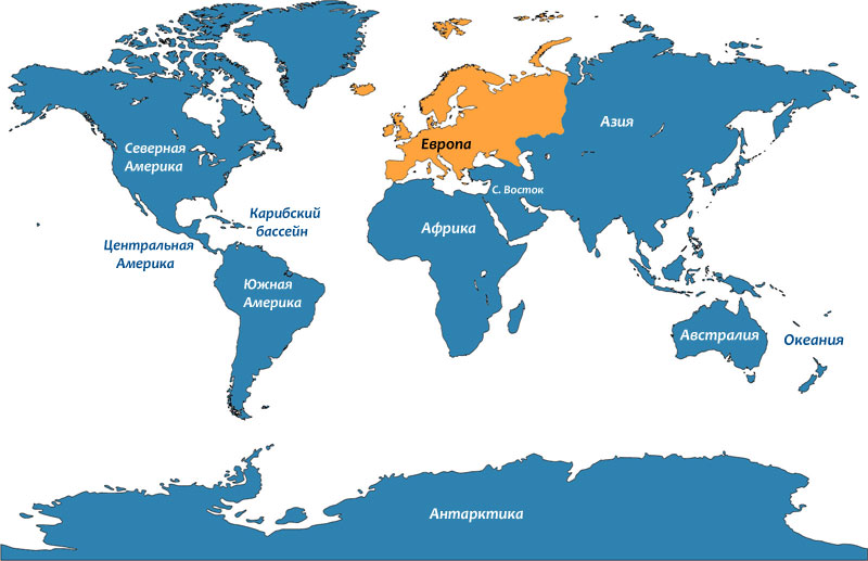 Западная Европа; Северная Европа; Восточная Европа; Южная Европа; Центральная Европа; Юго-Западная Европа; Юго-Восточная Европа |
